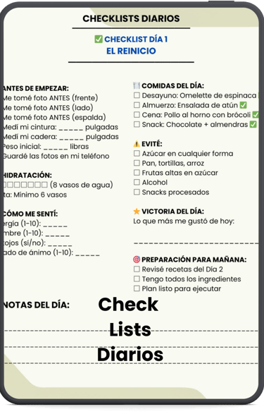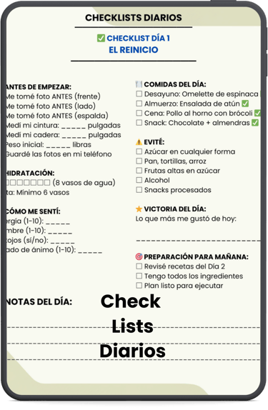 Además del plan de 7 días, éste programa incluye "Recursos Complementarios" diseñados para acompañarte y ayudarte a sostener el proceso, incluso después de la primera semana.